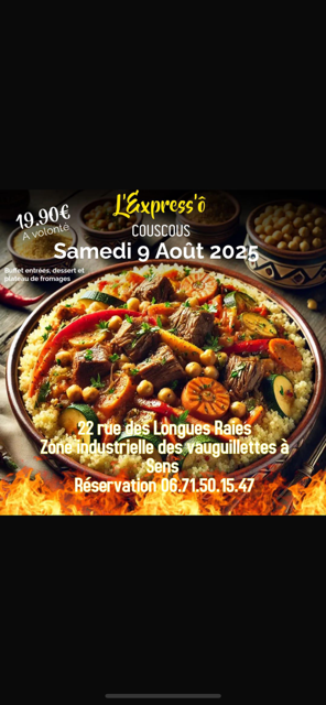 📅 Réouverture le 25 août 2025🍽 Couscous 3 viandes + dessert à 16,90 € tous les samedis soir sur réservation.